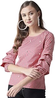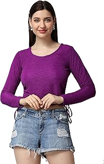 Casual Self Design Regular Fit Polyester Full Sleeves Crop Tops for Women with Crush String