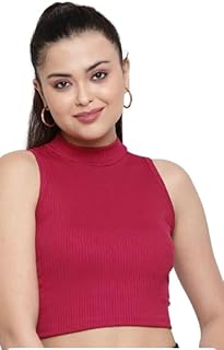 Women's High/Turtle Neck Short Sleeves Stylish Casual Crop Top, 17 Inches (Top-491 to 500 Sofia.)