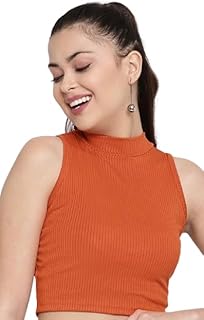 Black Studio Women's Sleeveless Mock Neck Crop Top, Ribbed Knit, Orange