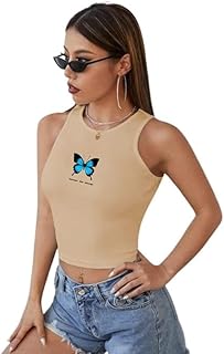 Reshma Collection Butterfly Design Printed Round Neck Women Rib Top | Tank Top | Women Tops