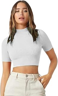 Women's High/Turtle Neck Short Sleeves Stylish Casual Crop Top, 17 Inches