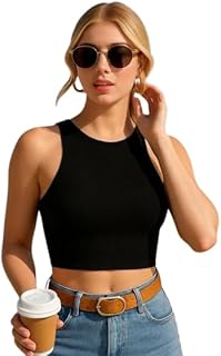 Women’s Sleeveless Slim Fit Crop/Tank Top High Neck Casual (BZF-Top-Tipsy)