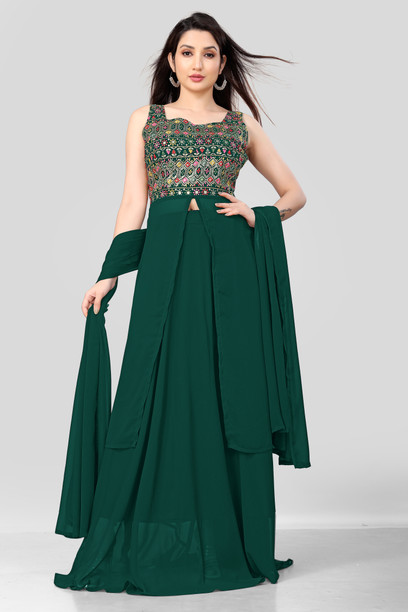 Women A-line Dark Green Above Knee/Mid Thigh Length Dre...
