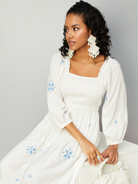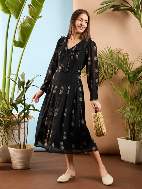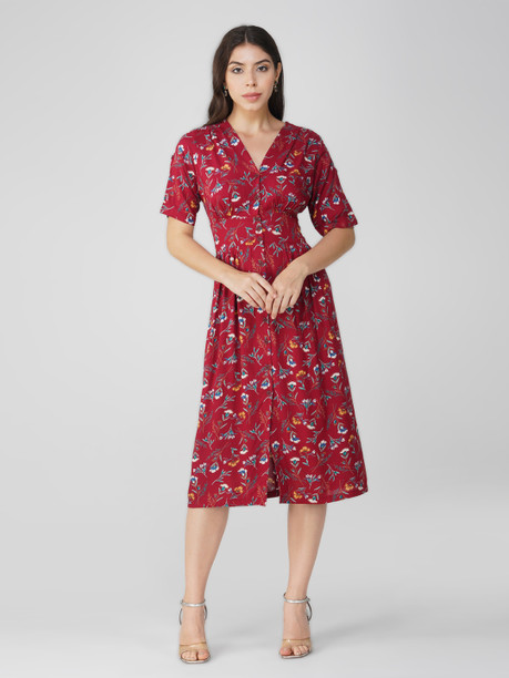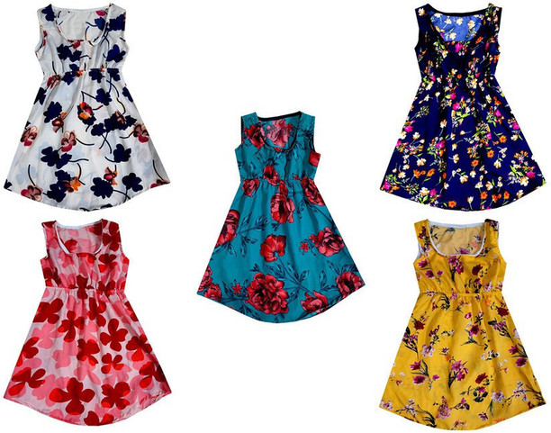 Women Fit and Flare Blue Above Knee/Mid Thigh Length Dr...