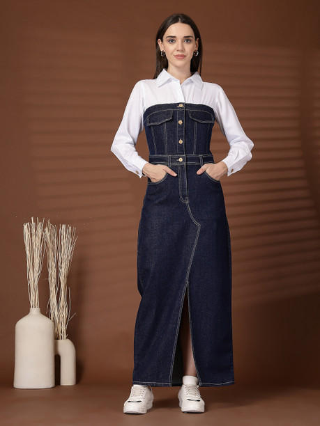 Women Bodycon Dark Blue Maxi/Full Length Dress