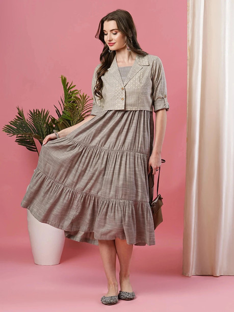 Women Fit and Flare Grey Midi/Calf Length Dress
