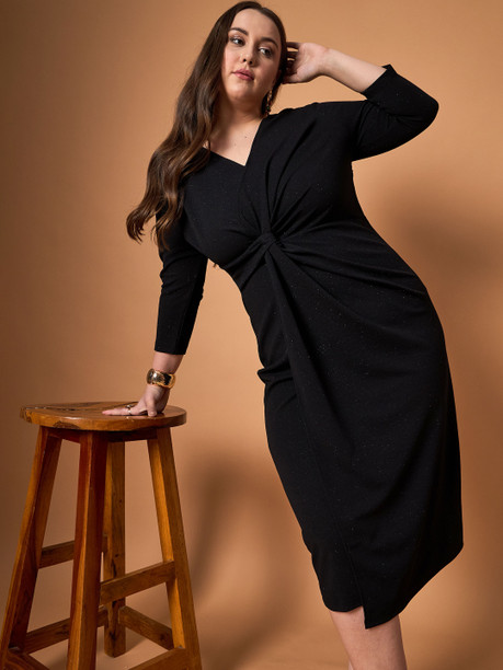 Women A-line Black Midi/Calf Length Dress